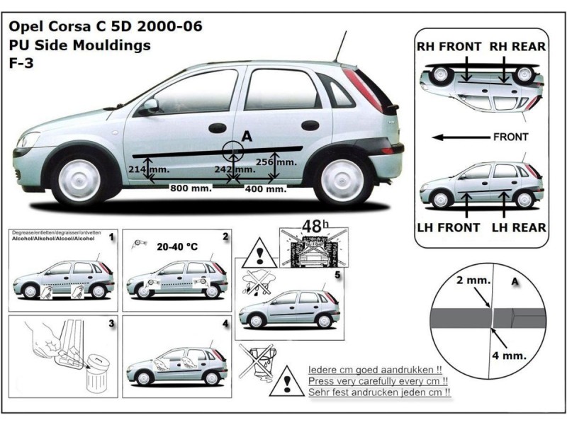 Ochranné boční lišty na dveře, Opel Corsa C, 2000-2006, 5 dveř.