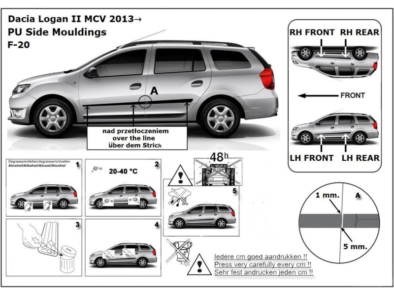 Ochranné boční lišty na dveře, Dacia Logan MCV, 2013-2020