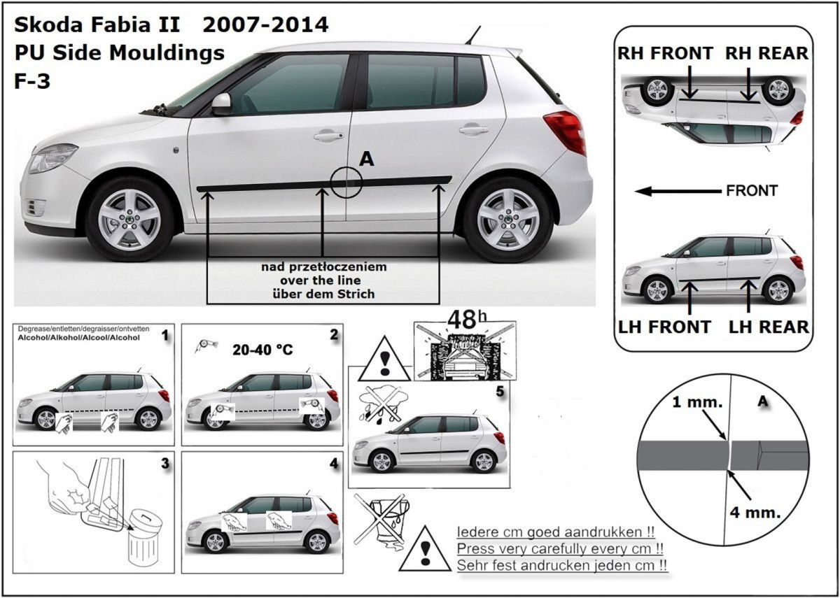 Ochranné boční lišty na dveře, Škoda Fabia II, 2007-2015