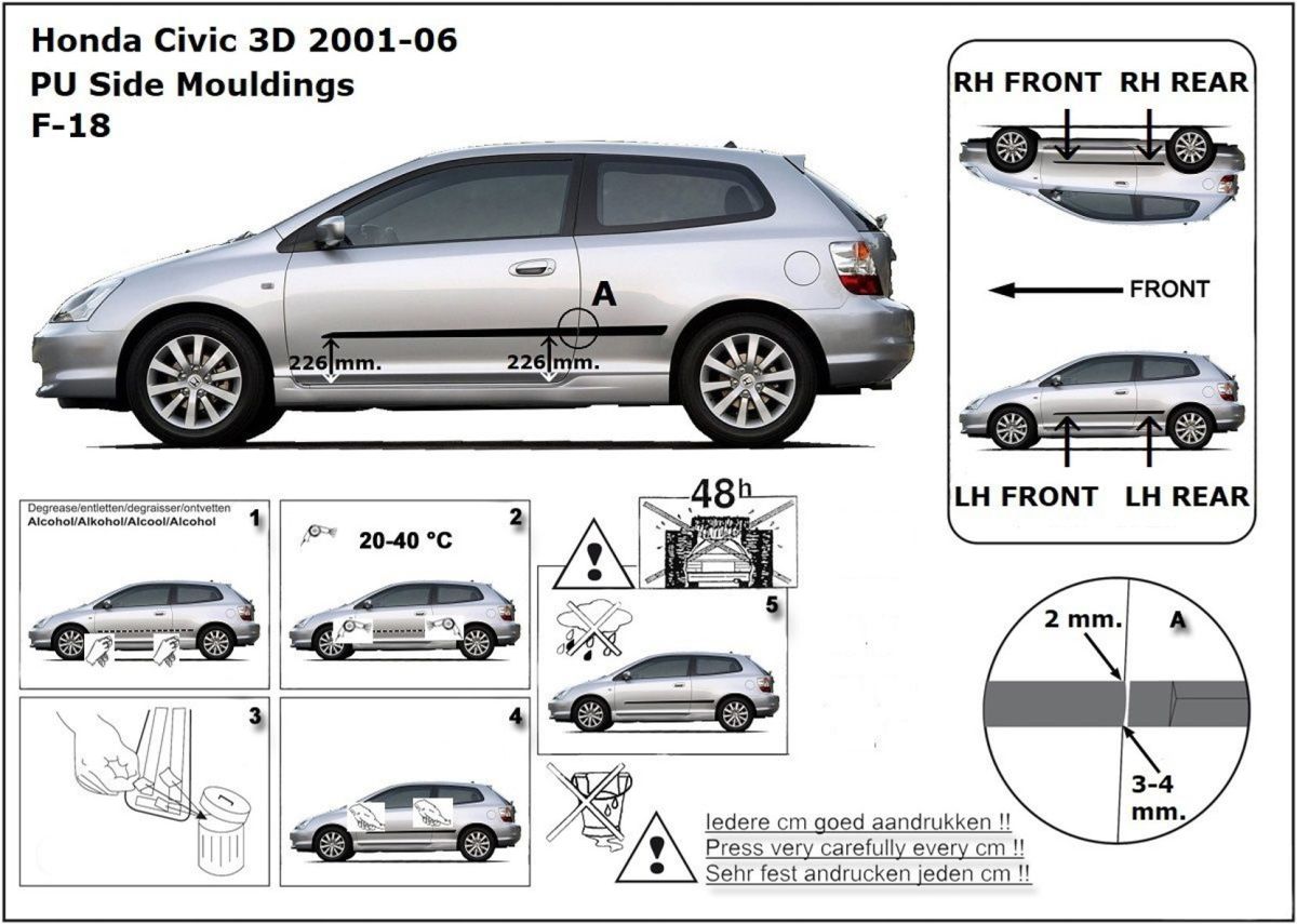 Ochranné boční lišty na dveře, Honda Civic VII, 2001-2005, 3 dveř.