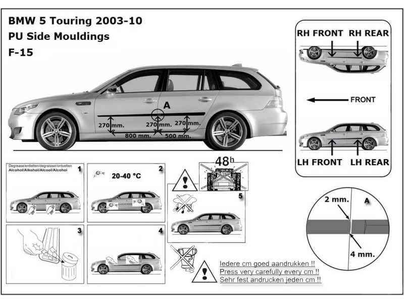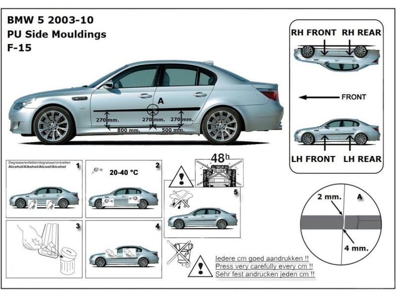 Ochranné boční lišty na dveře, BMW 5, E60, E61, 2003-2010