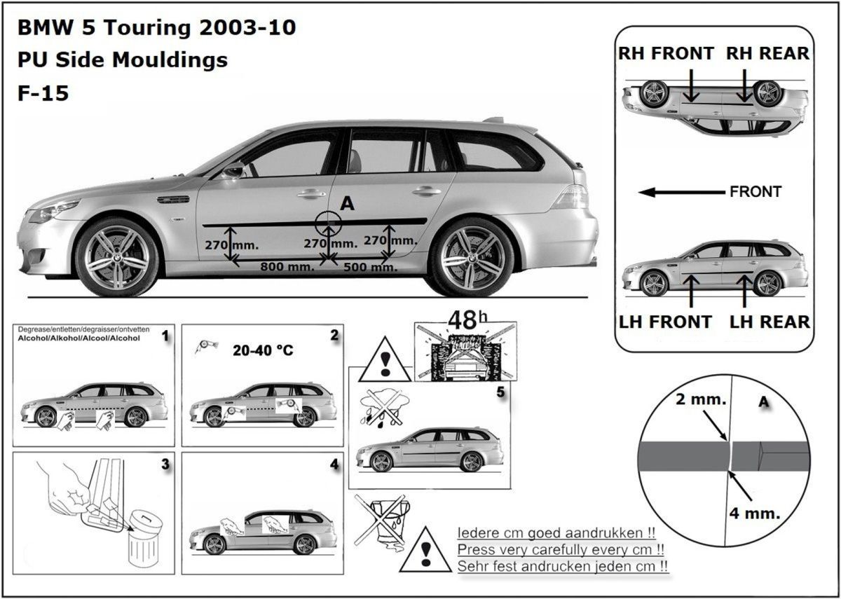 Ochranné lišty jsou vyráběny přesně na konkrétní model vozu, takže budou přesně pasovat na Váš vůz! Jejich montáž je velice snadná pomocí silně lepící pásky 3M, které je včetně odmašťovacích hadříků součástí balení. Návod na montáž.