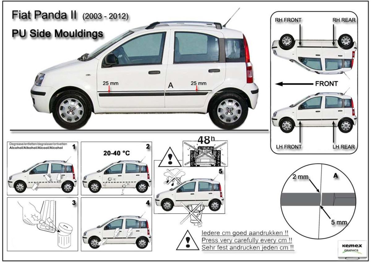 Ochranné boční lišty na dveře, Fiat Panda, Fiat Panda. 2003-2012