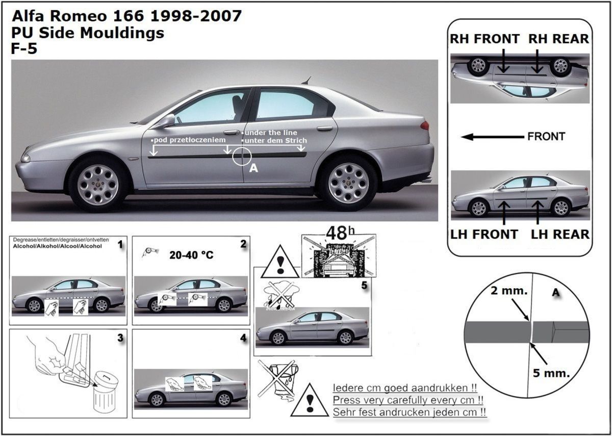 Ochranné boční lišty na dveře, Alfa Romeo 166, 1998->2007, sedan