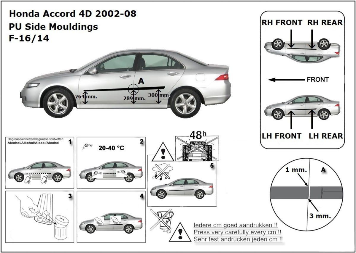 Ochranné boční lišty na dveře, Honda Accord, 2002-2008