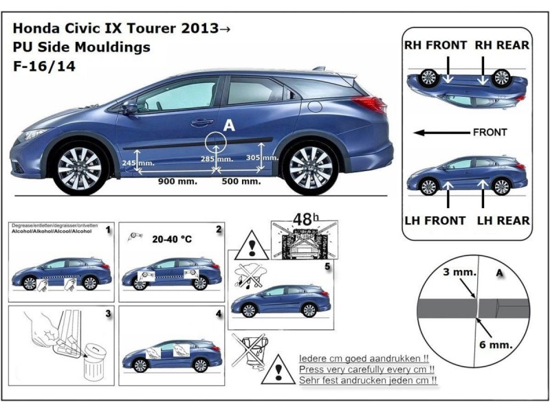 Ochranné boční lišty na dveře, Honda Civic Tourer IX, 2013-2017, Combi