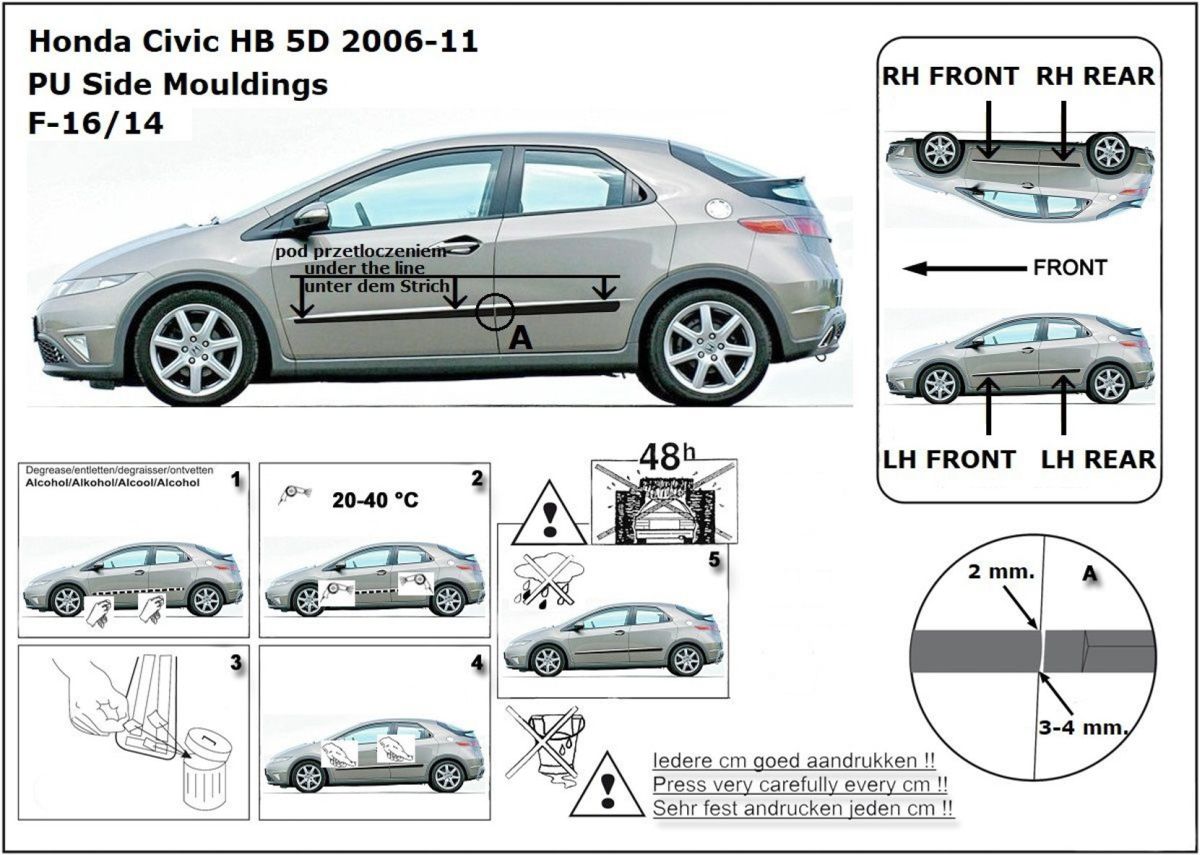 Ochranné boční lišty na dveře, Honda Civic VIII, 2006-2012, 5 dveř.