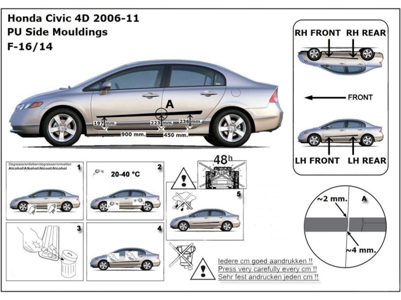 Ochranné boční lišty na dveře, Honda Civic VIII, 2006-2012, Sedan, 4 dveř.