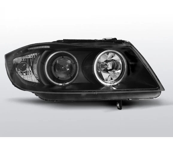 Přední světla projektorová (čočky) s diodovými kroužky Angel Eyes. Černé s integrovanými směrovkami.