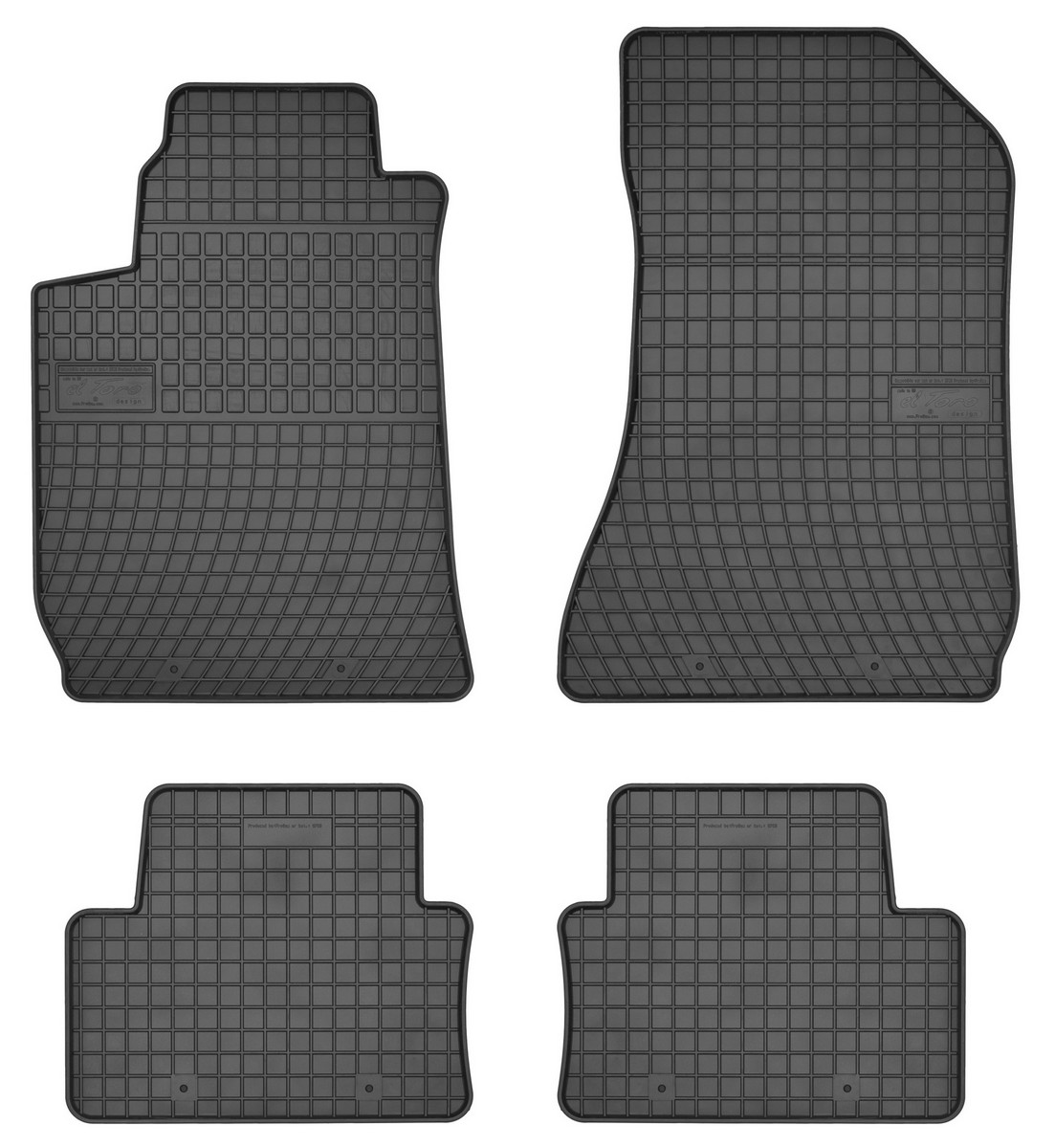 Koberce jsou vyráběny v černém provedení z kvalitní gumy, která má vysokou odolnost a životnost. Gumové rohože se velmi snadno udržují, stačí je pouze vytáhnout z auta a jednoduše opláchnout vodou. Pak stačí kobereček vytřít do sucha nebo nechat volně uschnout. Nehrozí, že by na gumě začala vznikat plíseň nebo se šířil v interiéru auta zápach.