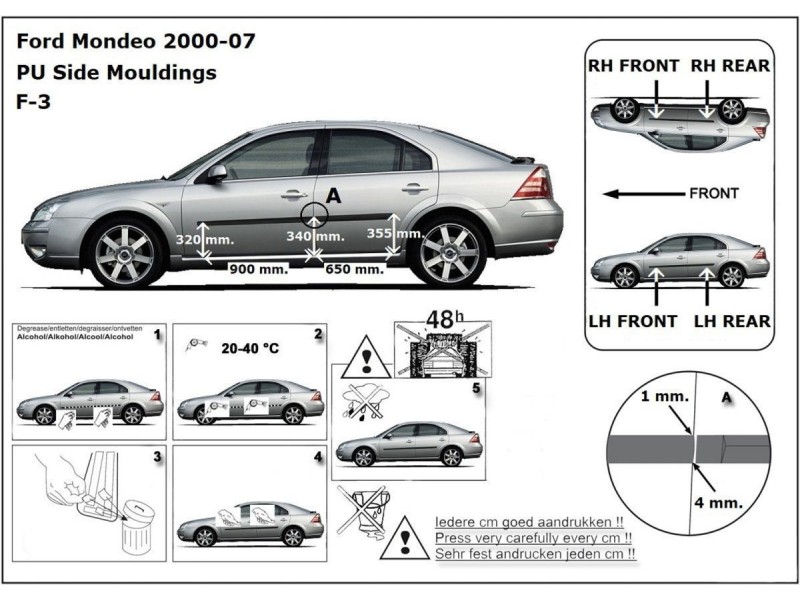Ochranné boční lišty na dveře, Ford Mondeo III, 2000-2007