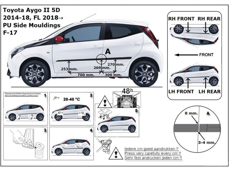 Ochranné boční lišty na dveře, Toyota Aygo II, 2014-2021