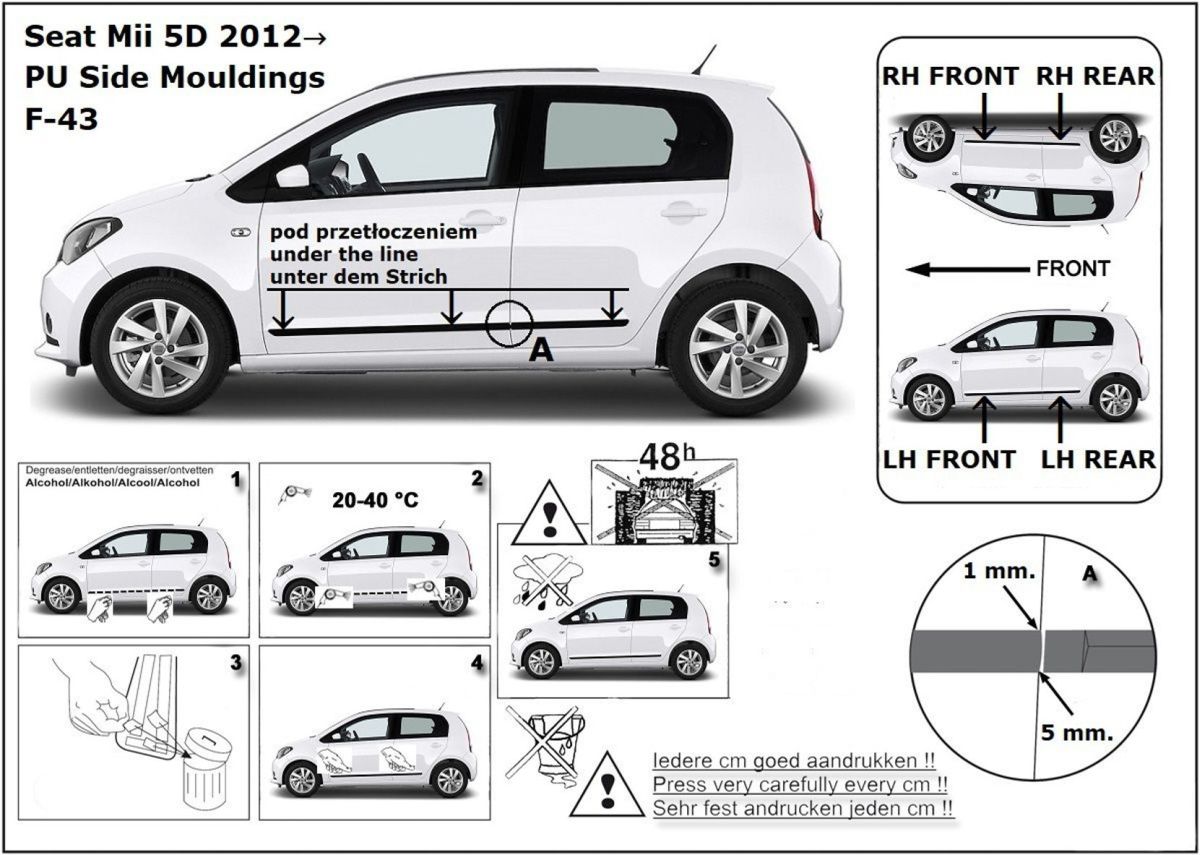 Ochranné boční lišty na dveře, Seat Mii, 2011-2019, 5 dveř.