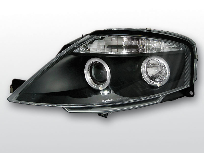 Přední světla projektorová (čočky) s diodovými kroužky Angel Eyes. Černé