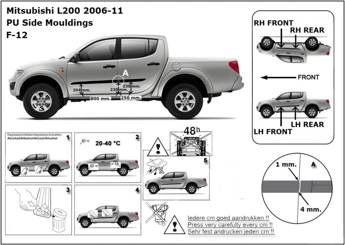 Ochranné boční lišty na dveře, Mitsubishi L200 IV, 2006-2016