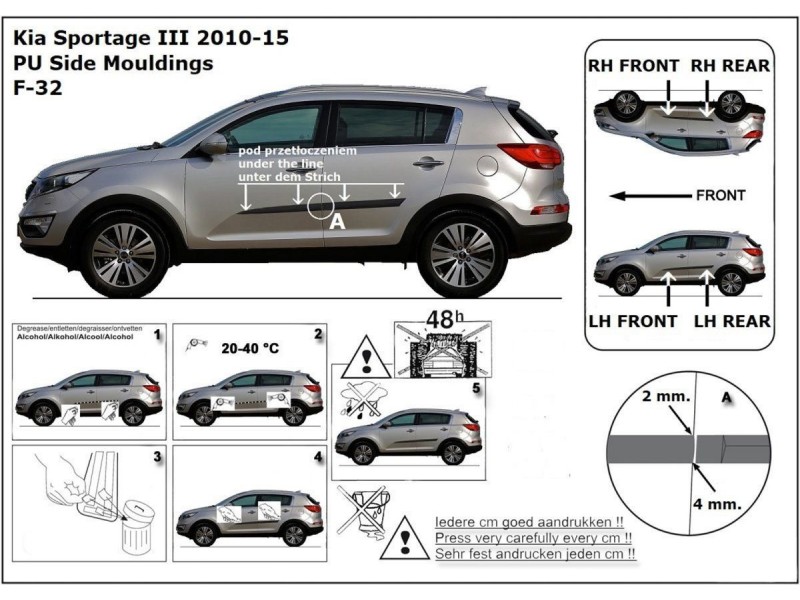 Ochranné boční lišty na dveře, Kia Sportage III, 2010-2015