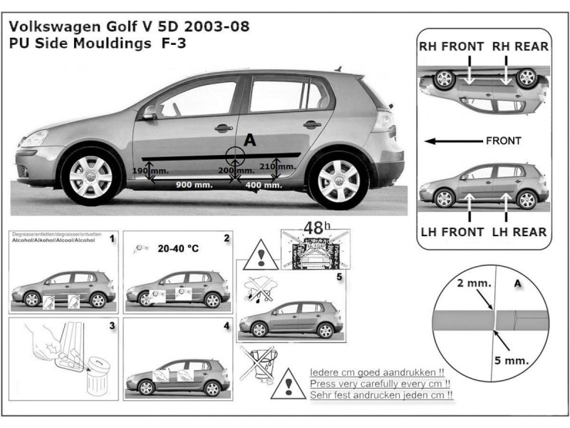 Ochranné boční lišty na dveře, VW Golf V, 2003-2009