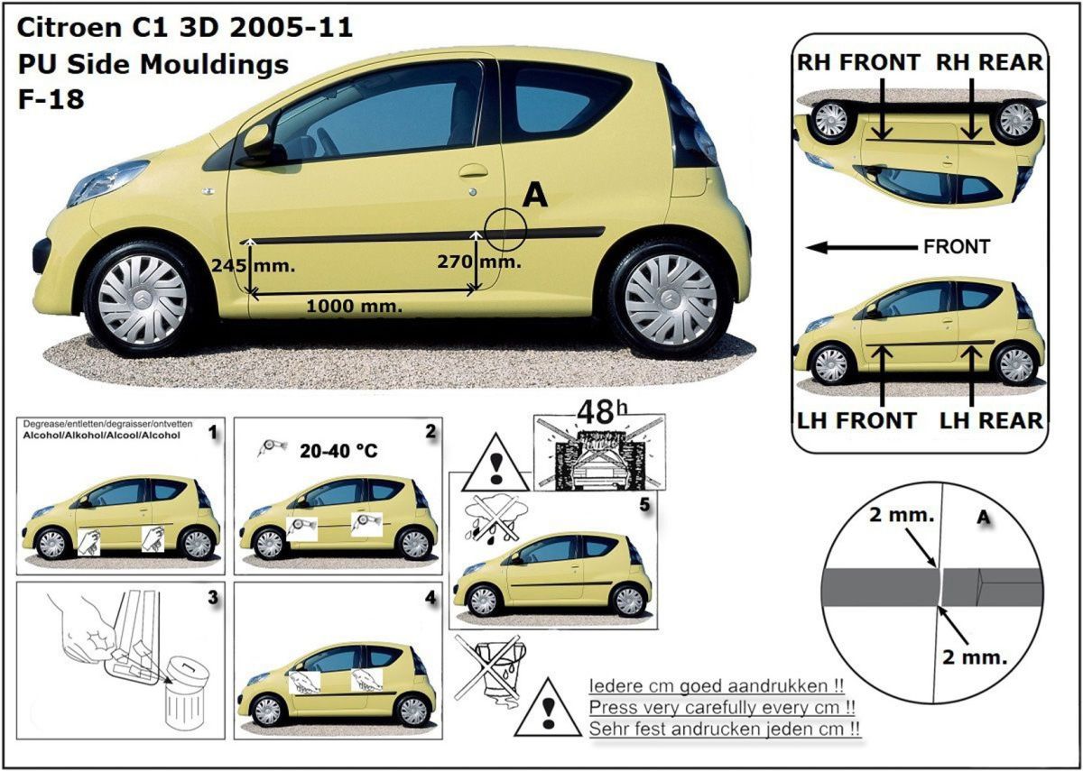 Ochranné lišty jsou vyráběny přesně na konkrétní model vozu, takže budou přesně pasovat na Váš vůz! Jejich montáž je velice snadná pomocí silně lepící pásky 3M, které je včetně odmašťovacích hadříků součástí balení. Návod na montáž.