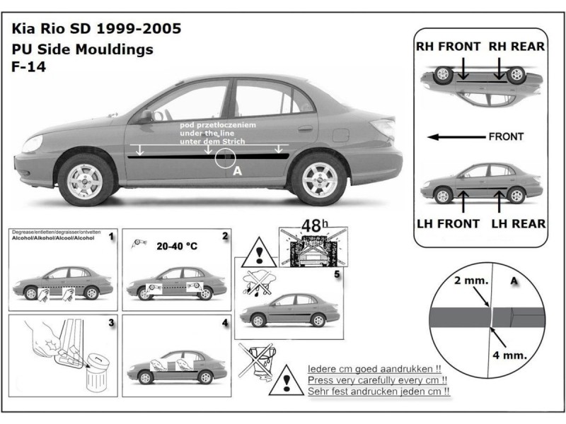 Ochranné boční lišty na dveře, Kia Rio I, 1999-2005