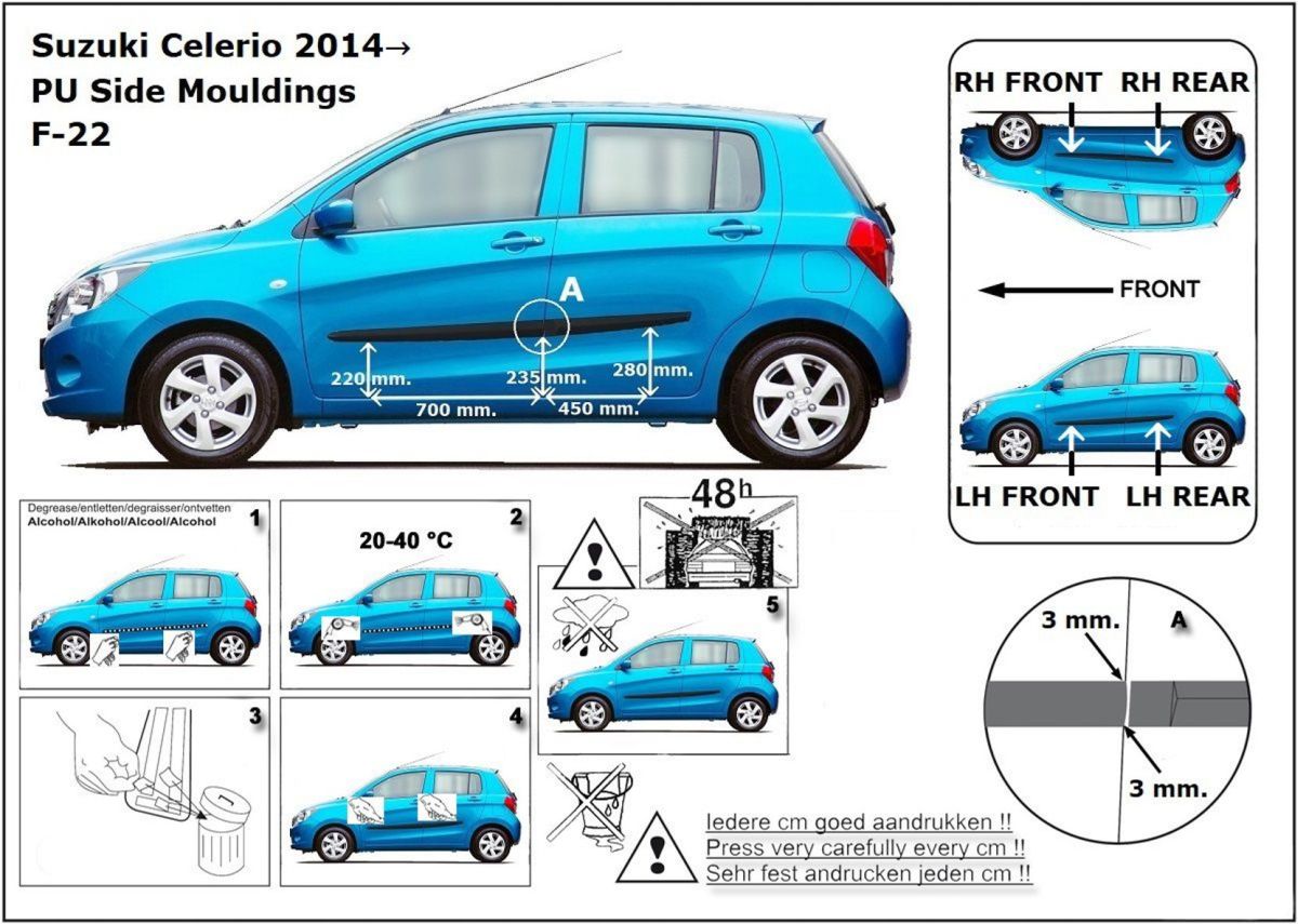 Ochranné lišty jsou vyráběny přesně na konkrétní model vozu, takže budou přesně pasovat na Váš vůz! Jejich montáž je velice snadná pomocí silně lepící pásky 3M, které je včetně odmašťovacích hadříků součástí balení. Návod na montáž.