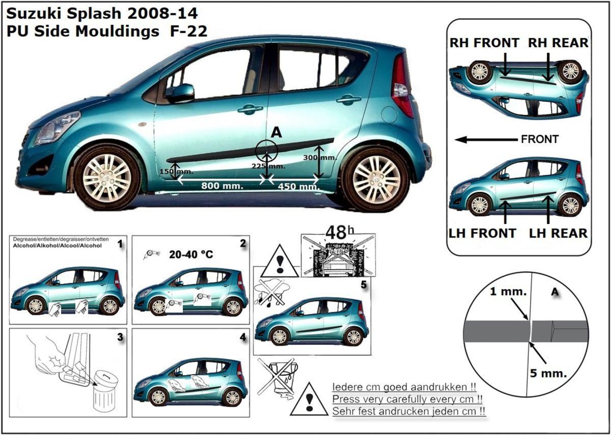 Ochranné boční lišty na dveře, Suzuki Splash, 2008-2014