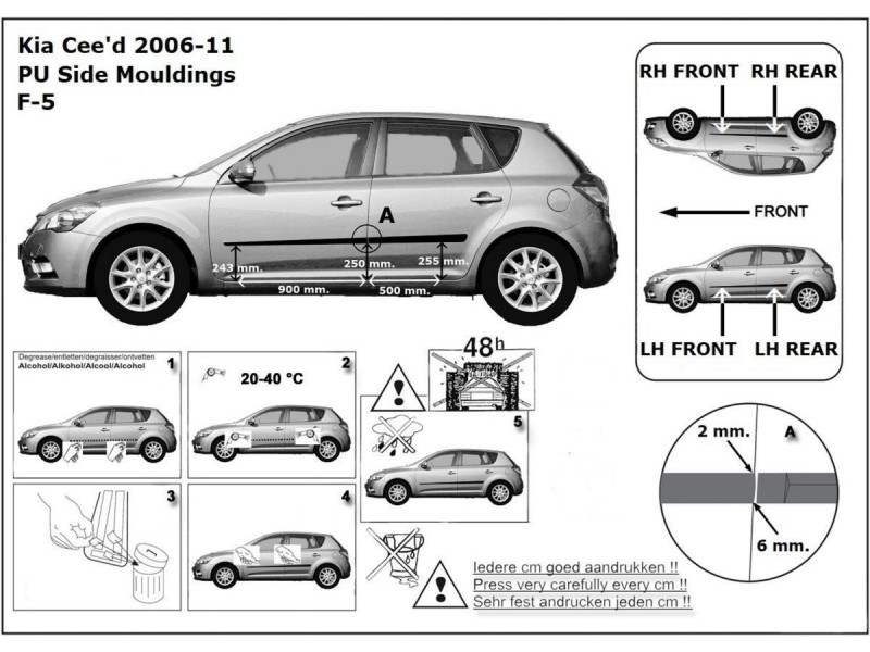 Ochranné lišty jsou vyráběny přesně na konkrétní model vozu, takže budou přesně pasovat na Váš vůz! Jejich montáž je velice snadná pomocí silně lepící pásky 3M, které je včetně odmašťovacích hadříků součástí balení. Návod na montáž.