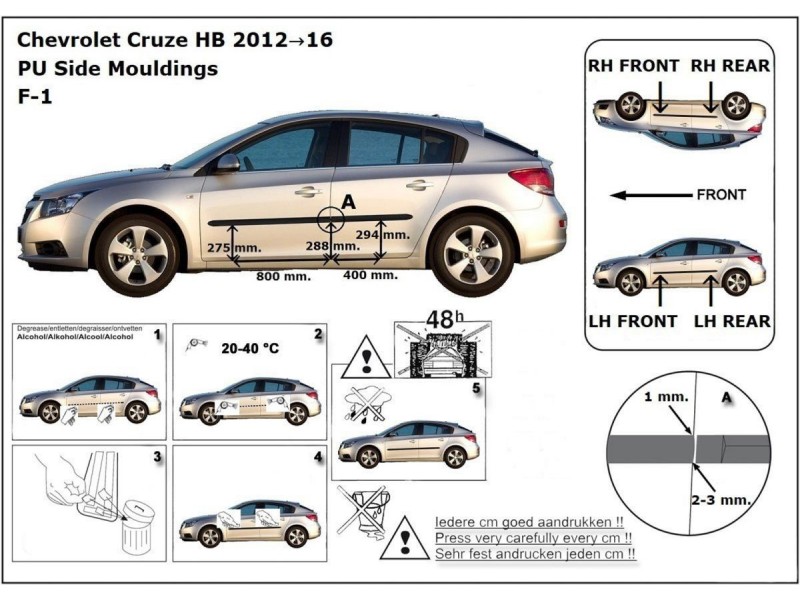 Ochranné boční lišty na dveře, Chevrolet Cruze, 2009-2015, Sedan