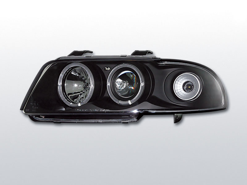 Přední světla projektorová (čočky) s diodovými kroužky Angel Eyes. Černé s integrovanými směrovkami.