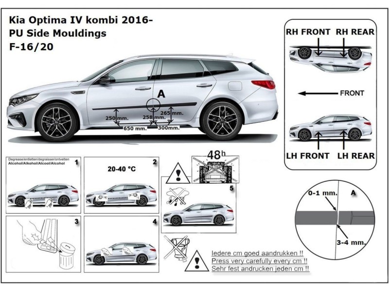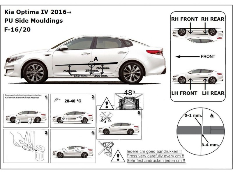 Ochranné boční lišty na dveře, Kia Optima IV, 2015-2020