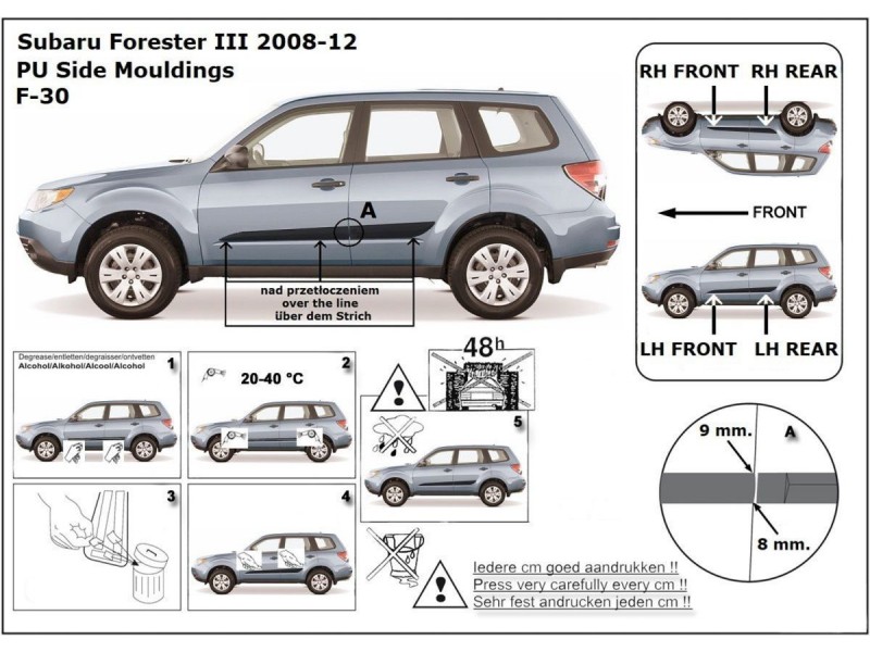 Ochranné boční lišty na dveře, Subaru Forester III, 2008-2013