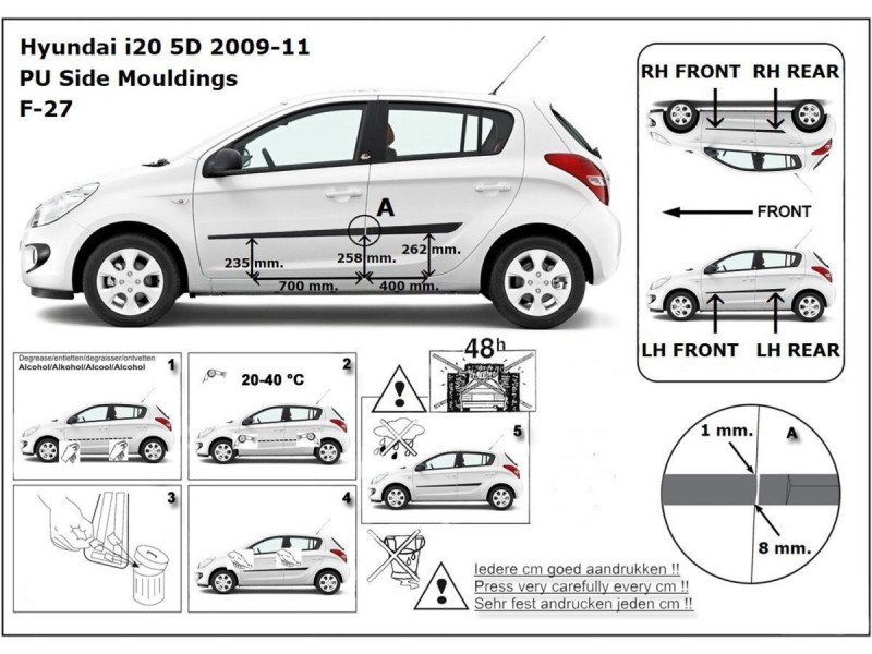 Ochranné boční lišty na dveře, Hyundai i20, 2009-2012, 5 dveř.