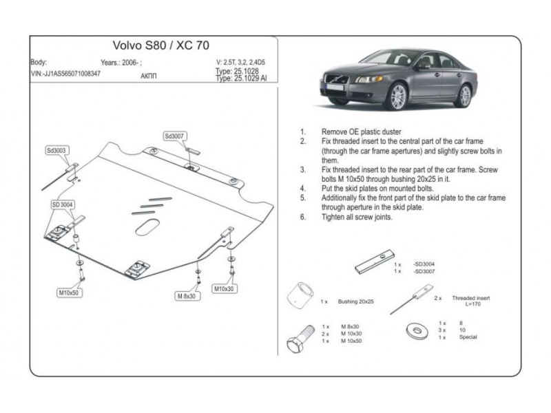 Kryt motoru a převodovky, VOLVO XC70 II, 2007->, ohýbaný, ocel 2,5 mm