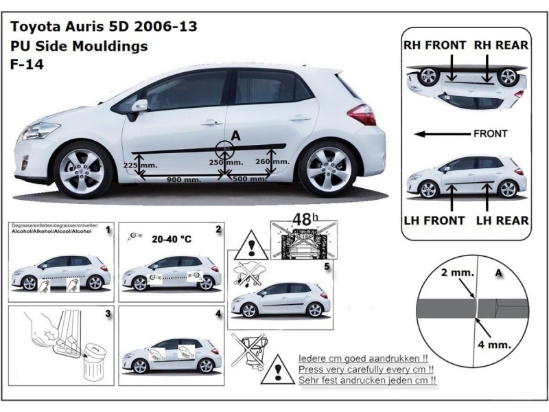 Ochranné boční lišty na dveře, Toyota Auris, 2006-2012, 5 dveř.