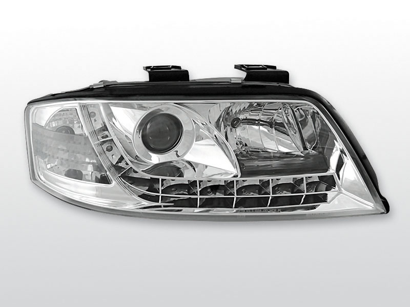 Světla projektorová (čočka) s LED diodovým páskem. Chromované s integrovanýma směrovkama.