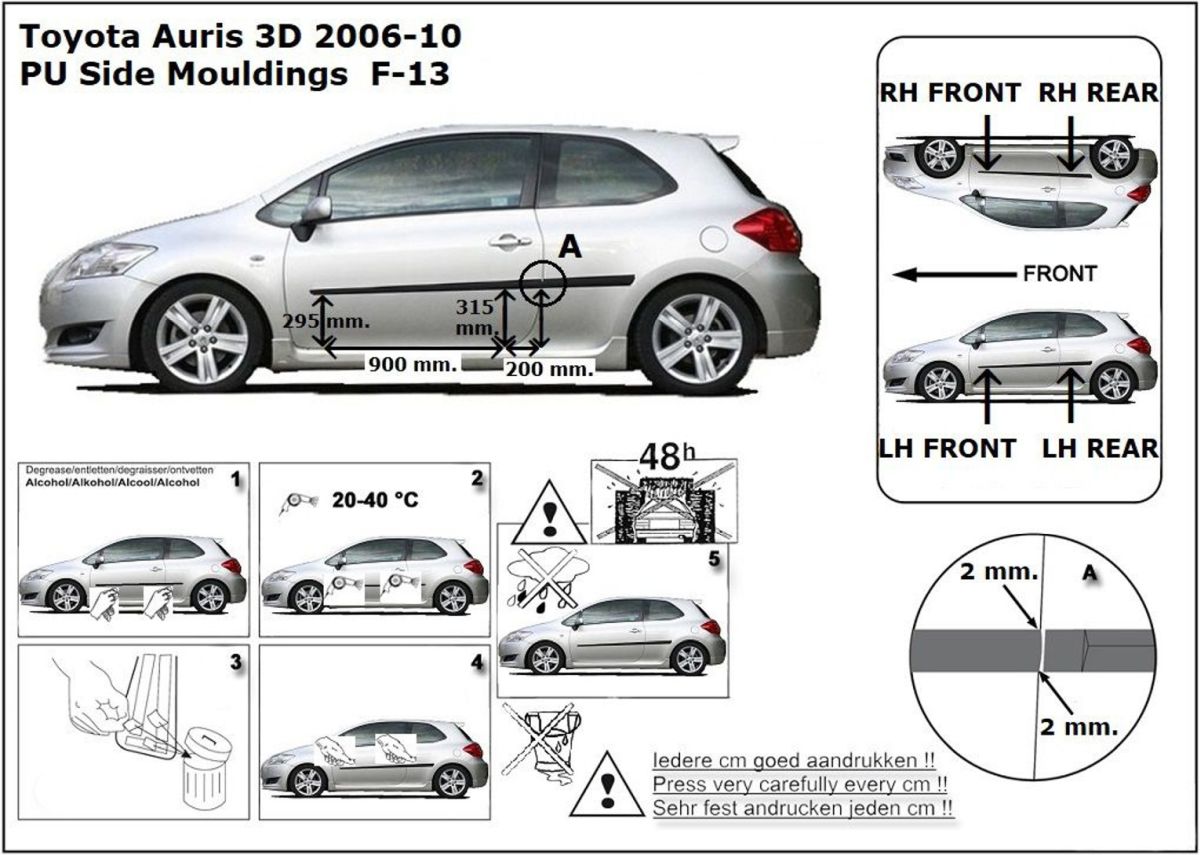 Ochranné lišty jsou vyráběny přesně na konkrétní model vozu, takže budou přesně pasovat na Váš vůz! Jejich montáž je velice snadná pomocí silně lepící pásky 3M, které je včetně odmašťovacích hadříků součástí balení. Návod na montáž.