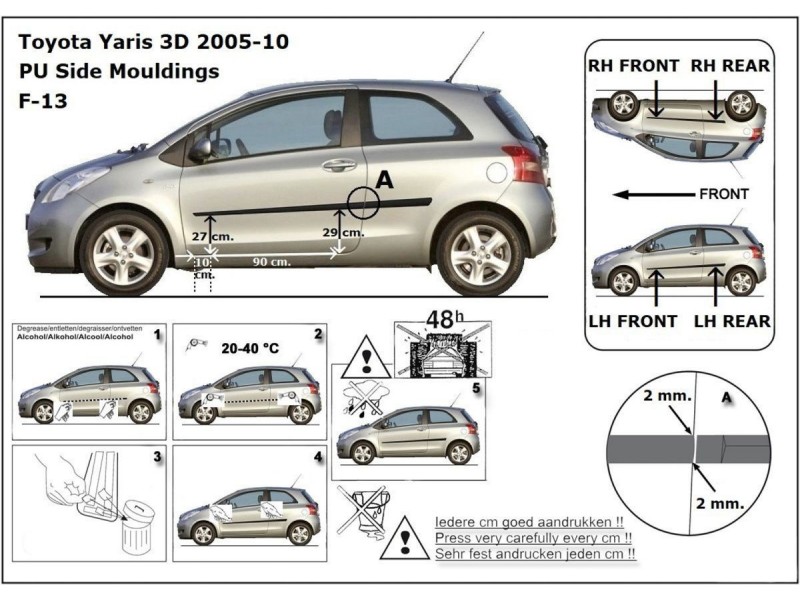Ochranné lišty jsou vyráběny přesně na konkrétní model vozu, takže budou přesně pasovat na Váš vůz! Jejich montáž je velice snadná pomocí silně lepící pásky 3M, které je včetně odmašťovacích hadříků součástí balení. Návod na montáž.