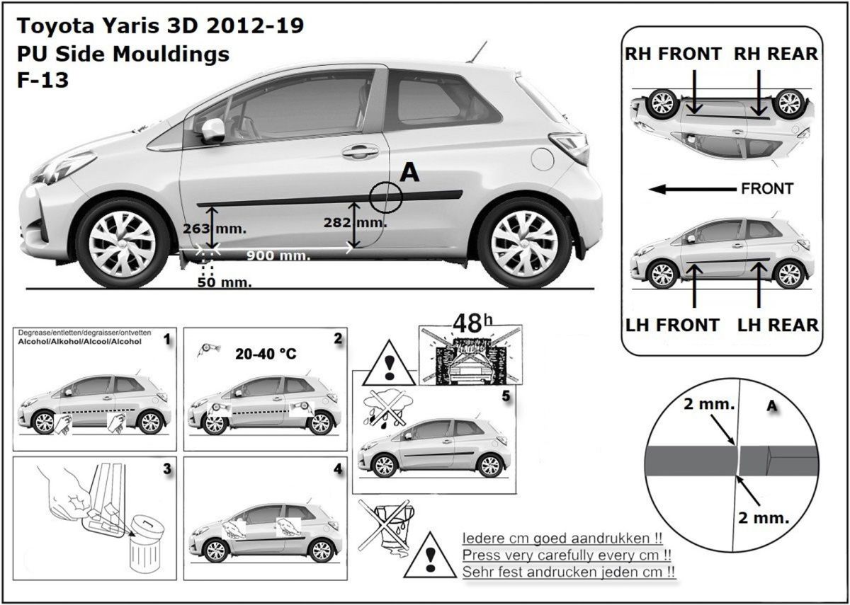Ochranné boční lišty na dveře, Toyota Yaris III, 2011-2020, 3.dveř.
