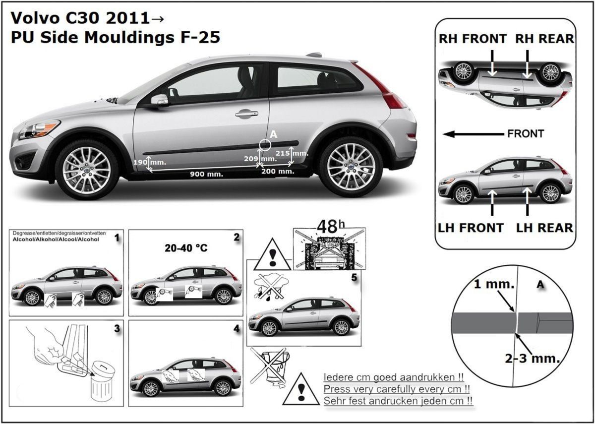 Ochranné boční lišty na dveře, Volvo C30, 2006-2013
