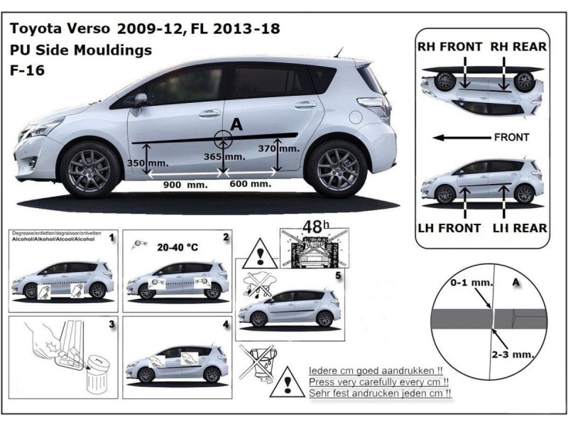 Ochranné boční lišty na dveře, Toyota Verso, 2013-2019