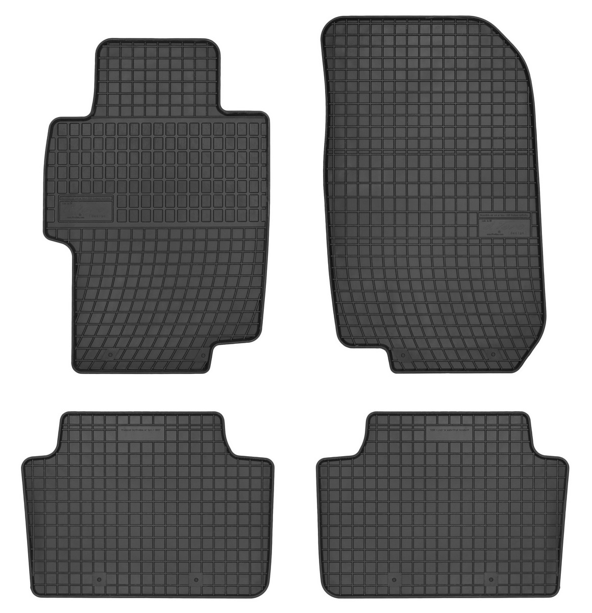 Koberce jsou vyráběny v černém provedení z kvalitní gumy, která má vysokou odolnost a životnost. Gumové rohože se velmi snadno udržují, stačí je pouze vytáhnout z auta a jednoduše opláchnout vodou. Pak stačí kobereček vytřít do sucha nebo nechat volně uschnout. Nehrozí, že by na gumě začala vznikat plíseň nebo se šířil v interiéru auta zápach.