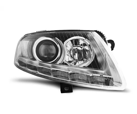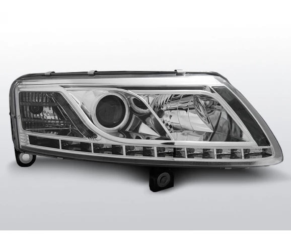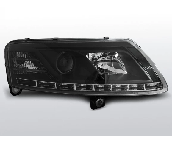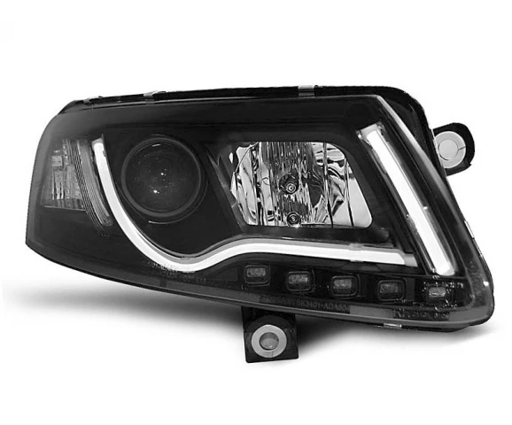 Přední světla, AUDI A6 C6, 2004-2008, LED TUBE LIGHTS TRUE DRL BLACK
