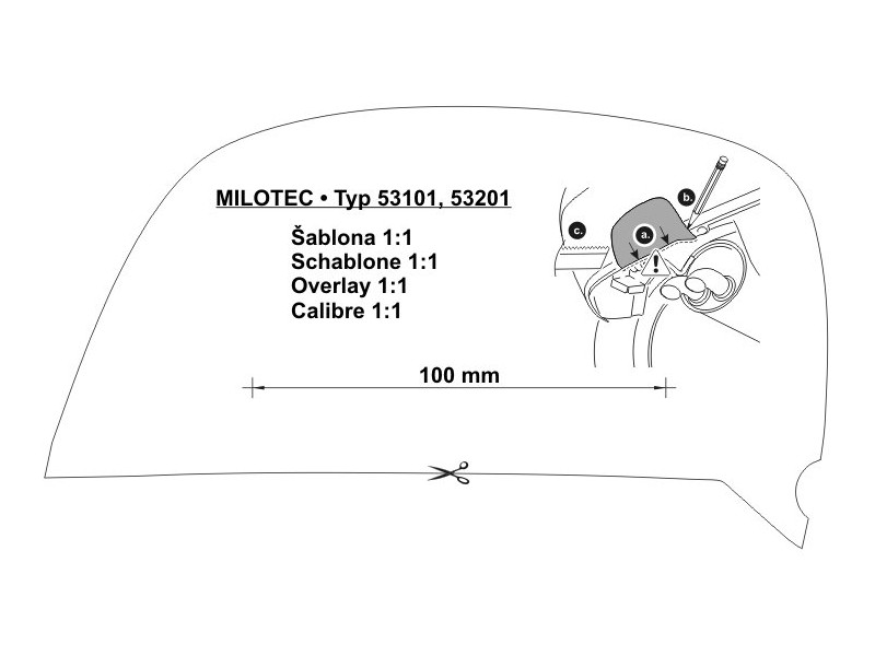 1x koncovka výfuku (ušlechtilá ocel), 3x distanční kroužek (1x 4 mm + 1x 2,5 mm + 1x 1,5 mm), 1x rámeček ze stříbrného matného ABS, 1x šablona pro vyříznutí otvoru do nárazníku, 1x odmašťovací ubrousek, 1x PU-lepidlo 12,5 ml s nástavcem, 1x trubička Sika primer-206 1,4 ml, 1x návod pro lepení (Sika/PU), 1x návod pro lakování, 1x montážní návod