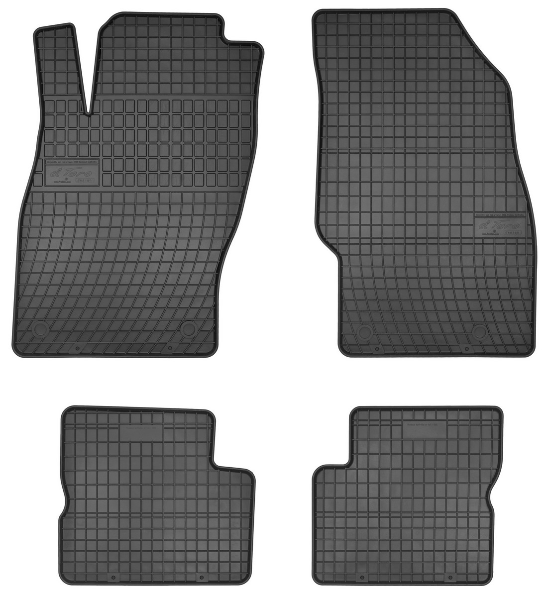 Koberce jsou vyráběny v černém provedení z kvalitní gumy, která má vysokou odolnost a životnost. Gumové rohože se velmi snadno udržují, stačí je pouze vytáhnout z auta a jednoduše opláchnout vodou. Pak stačí kobereček vytřít do sucha nebo nechat volně uschnout. Nehrozí, že by na gumě začala vznikat plíseň nebo se šířil v interiéru auta zápach.