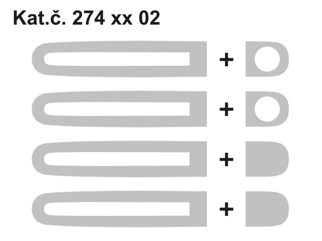 4x kryt kliky - design s oválným otvorem ze stříbrného matného ABS opatřený oboustrannou pěnovou lepenkou, 4x doplňkový kryt kliky (malý) opatřený oboustrannou pěnovou lepenkou, 1x odmašťovací ubrousek, 1x montážní návod