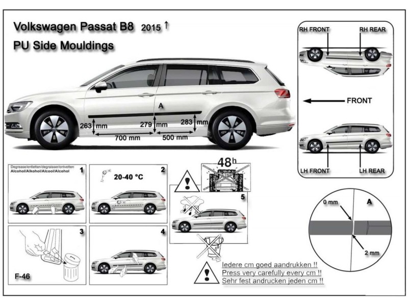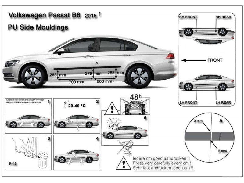 Ochranné boční lišty na dveře, VW Passat B8, 2014- , Combi, Sedan