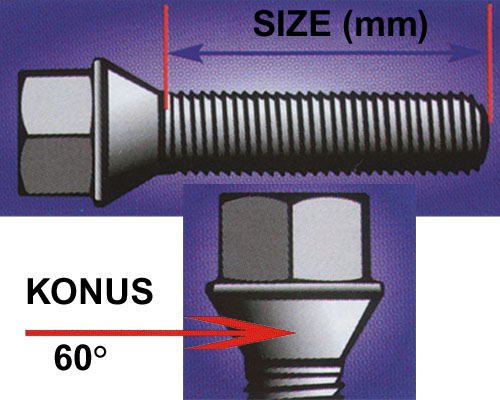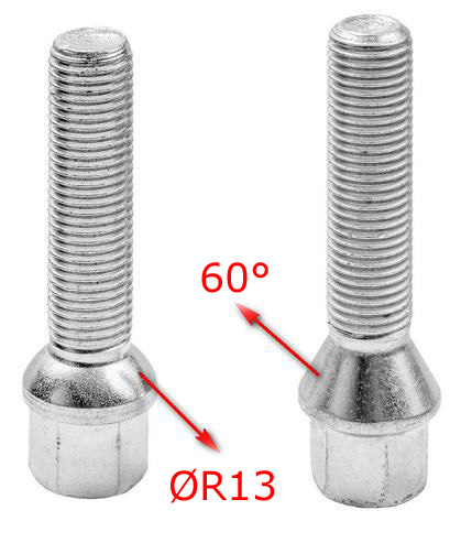 Při výběru šroubů si zjistěte dosedací plochu šroubů (kuželový šroub nebude přesně sedět v kulové dosedací ploše a upevnění kola tak není dostatečné). Nabízíme dosedací plochu ve tvaru kužele nebo koule viz foto.