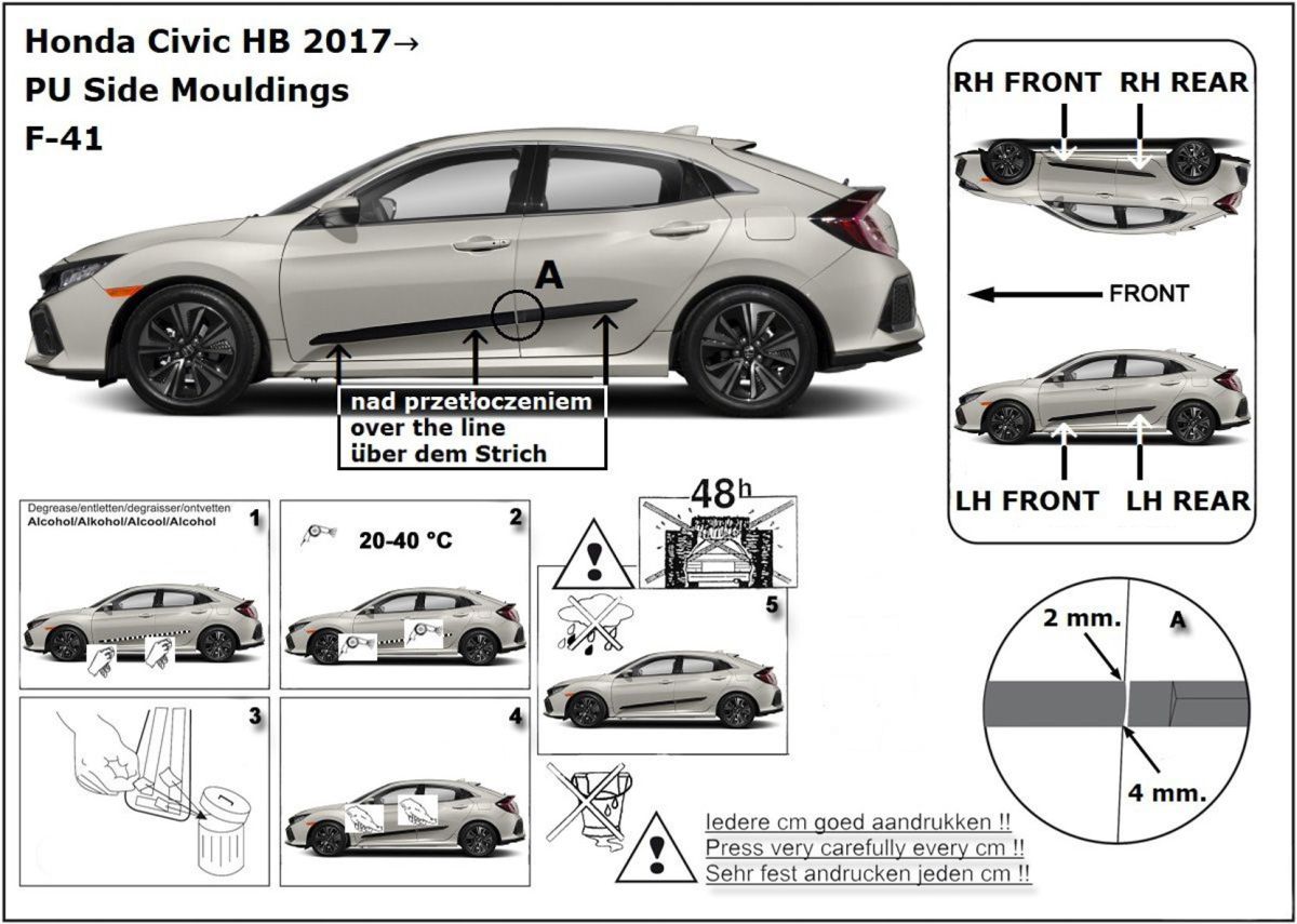 Ochranné boční lišty na dveře, Honda Civic X, 2017-2021, 5 dveř., Hatchback
