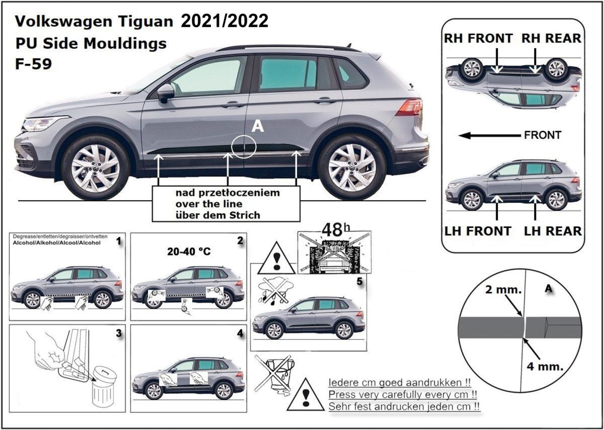 Ochranné boční lišty na dveře, VW Tiguan, 2021- , po faceliftu