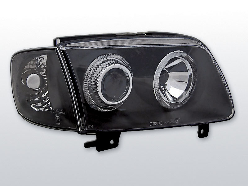 Přední světla projektorová (čočky) s diodovými kroužky Angel Eyes. Černé s oddělenými směrovkami.