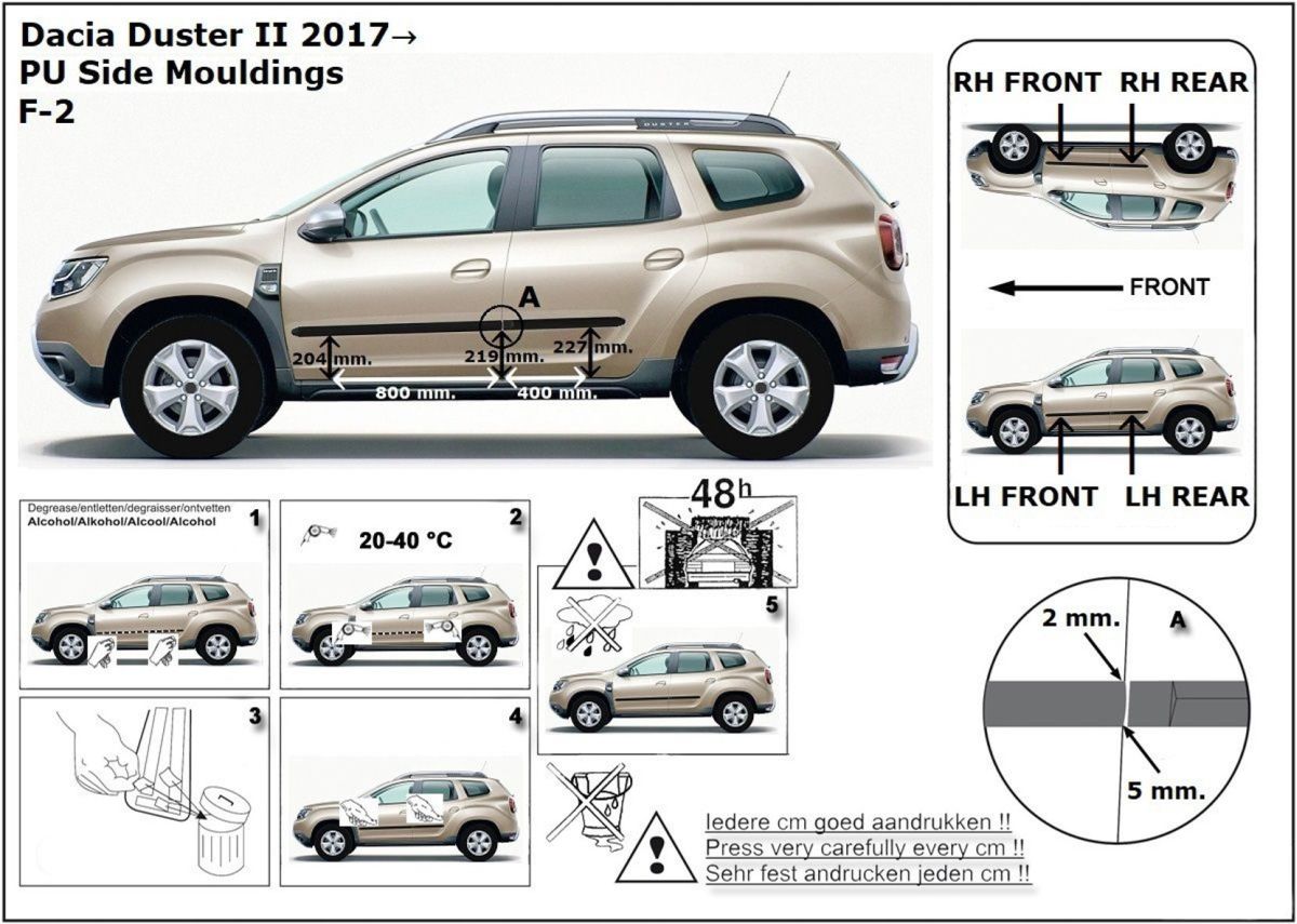 Ochranné lišty jsou vyráběny přesně na konkrétní model vozu, takže budou přesně pasovat na Váš vůz! Jejich montáž je velice snadná pomocí silně lepící pásky 3M, které je včetně odmašťovacích hadříků součástí balení. Návod na montáž.